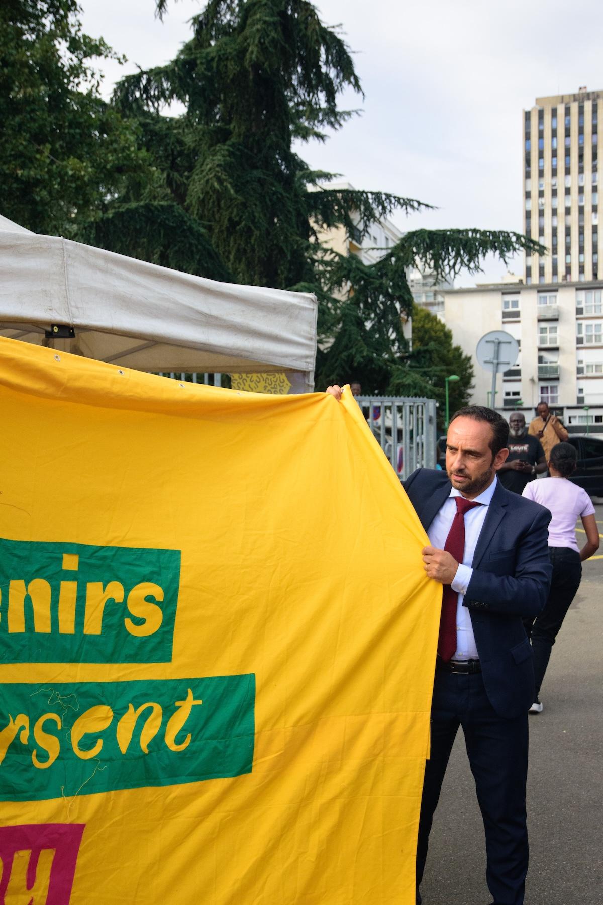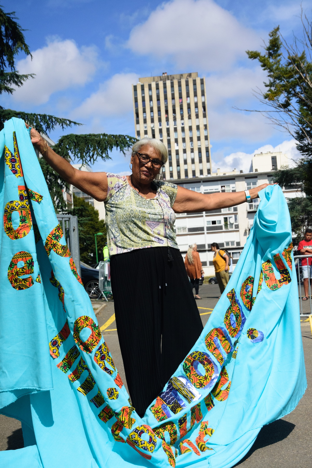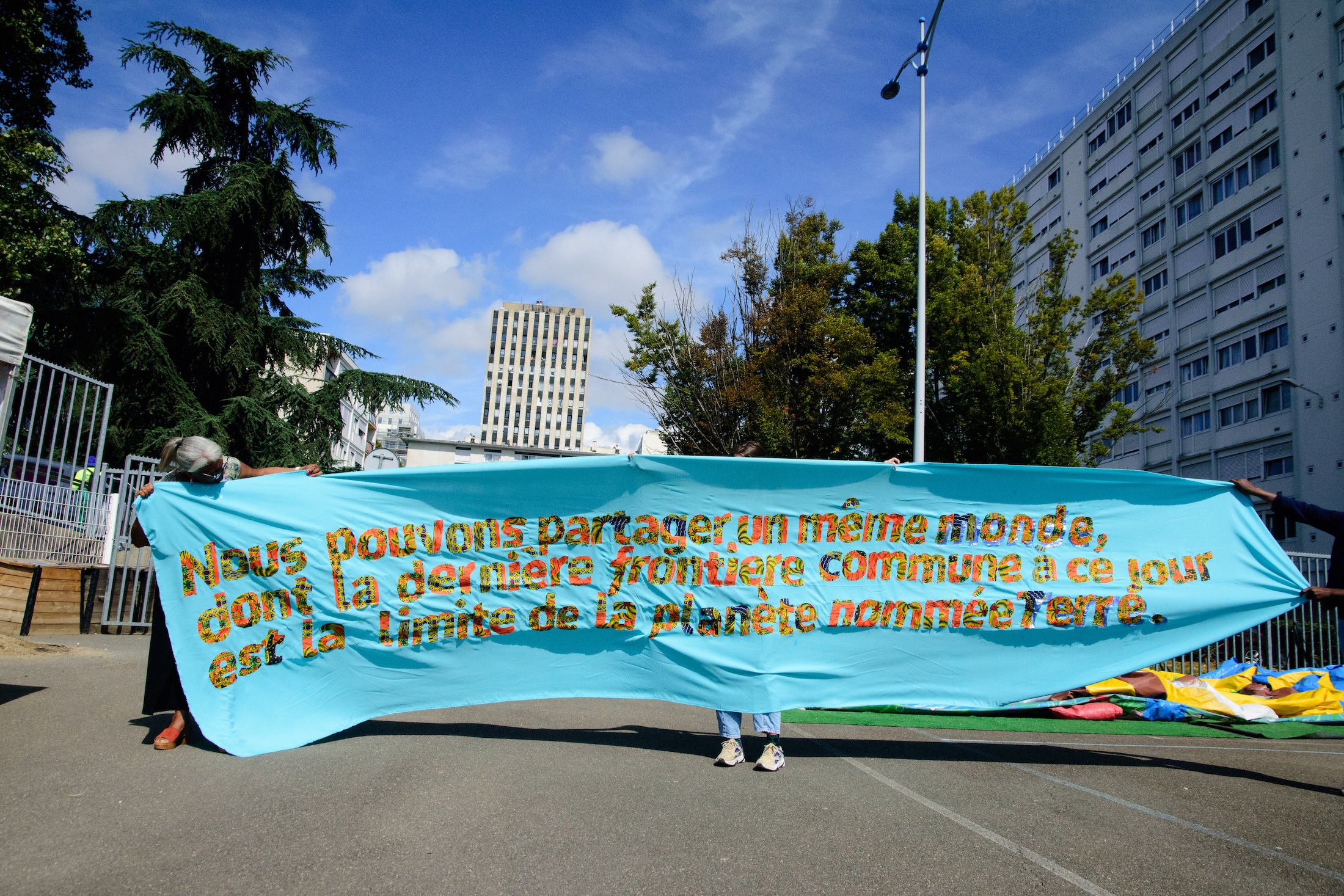 " À Sarcelles, Ruedi et Vera Baur ont imaginé un projet artistique où le tissu matérialise et célèbre la richesse du Tout-monde. En activant un « design de la relation », leur démarche, à la fois poétique et collective, interroge la place du sensible dans l’espace public et son rôle dans la construction du vivre-ensemble. "