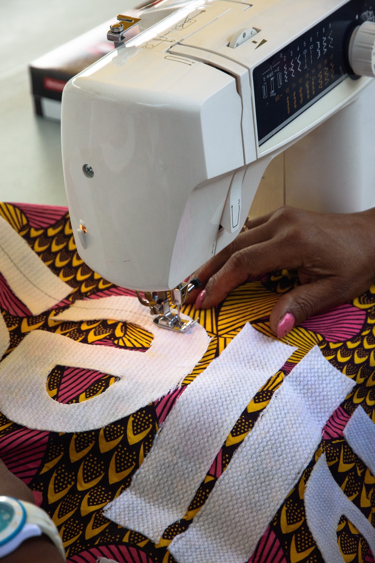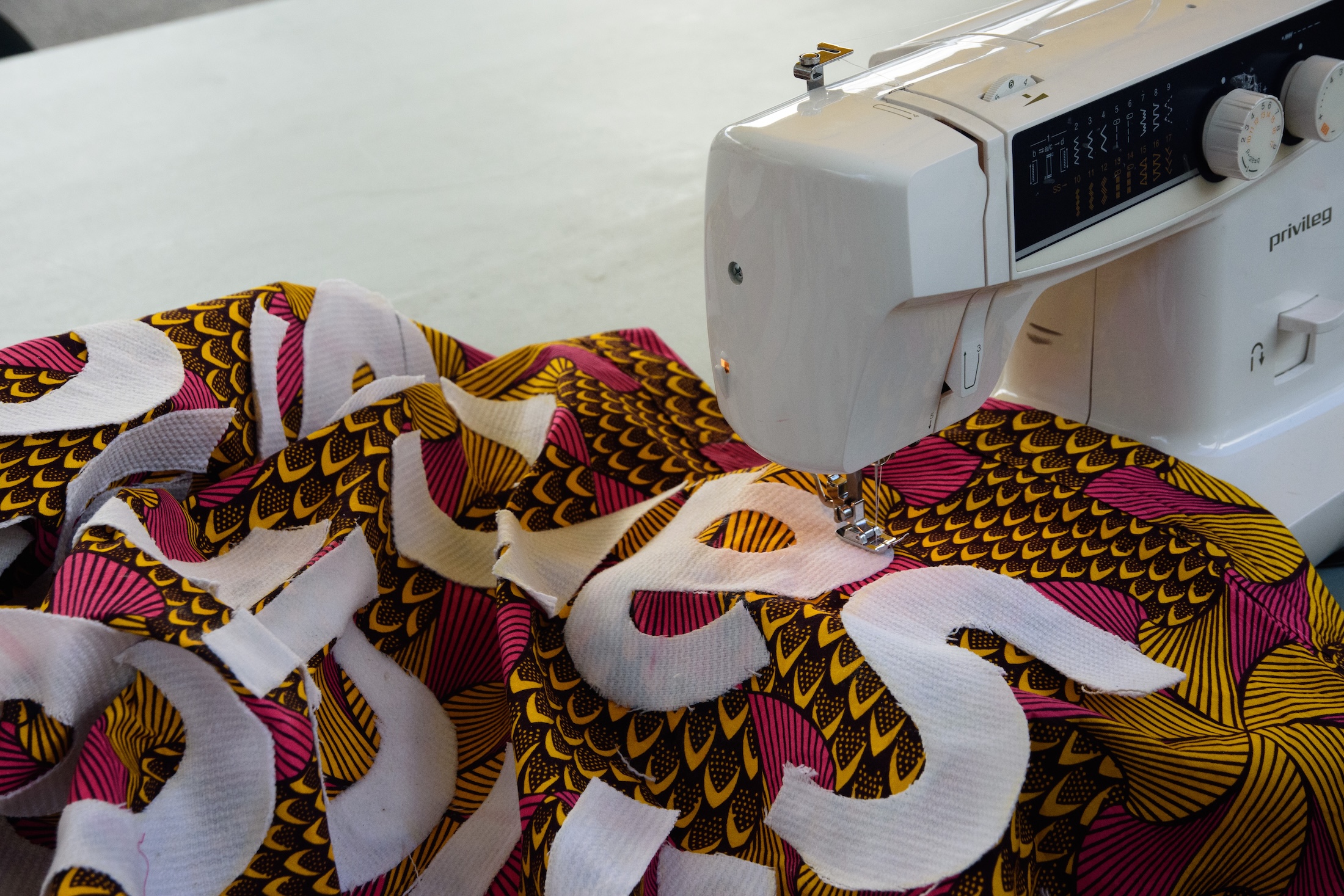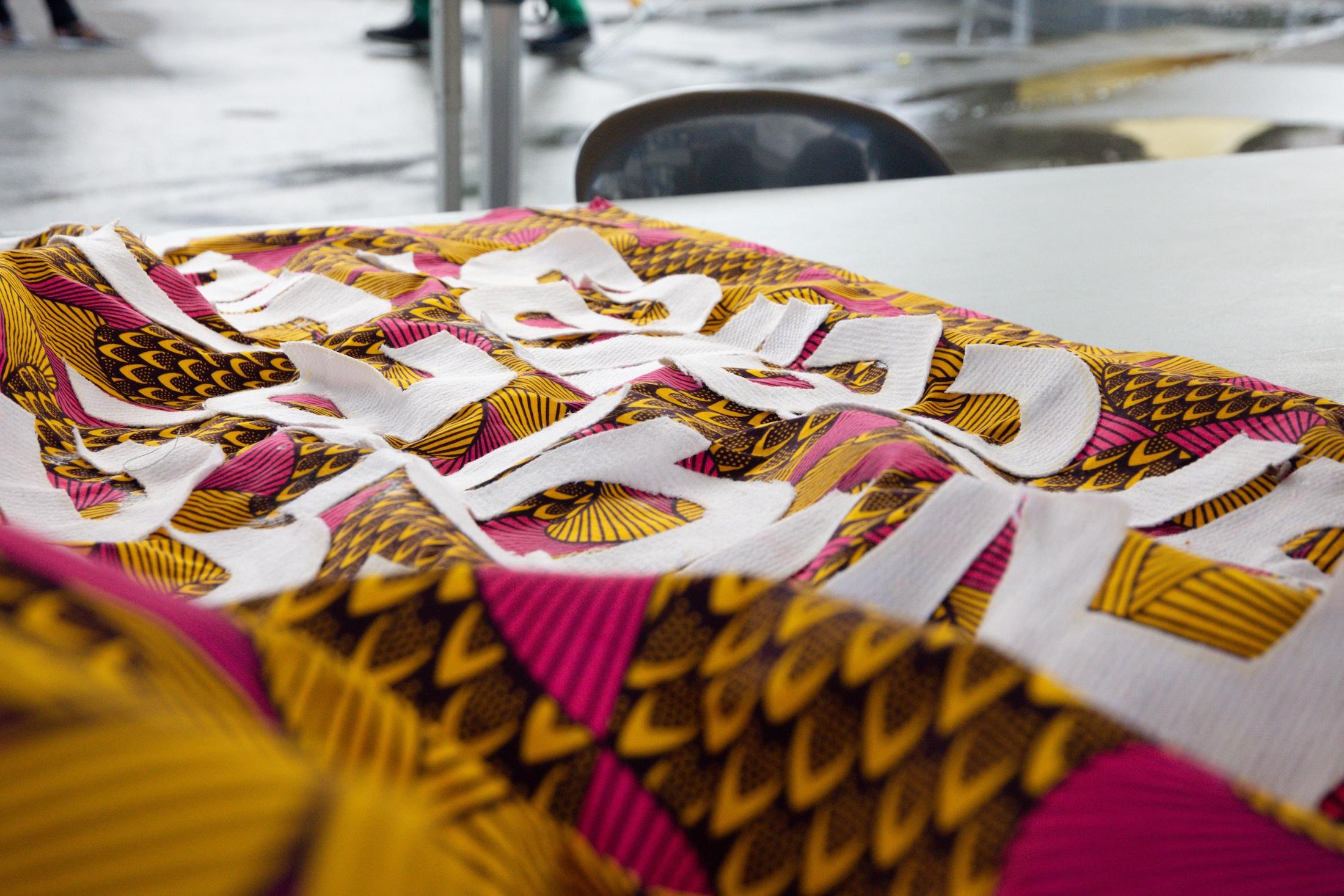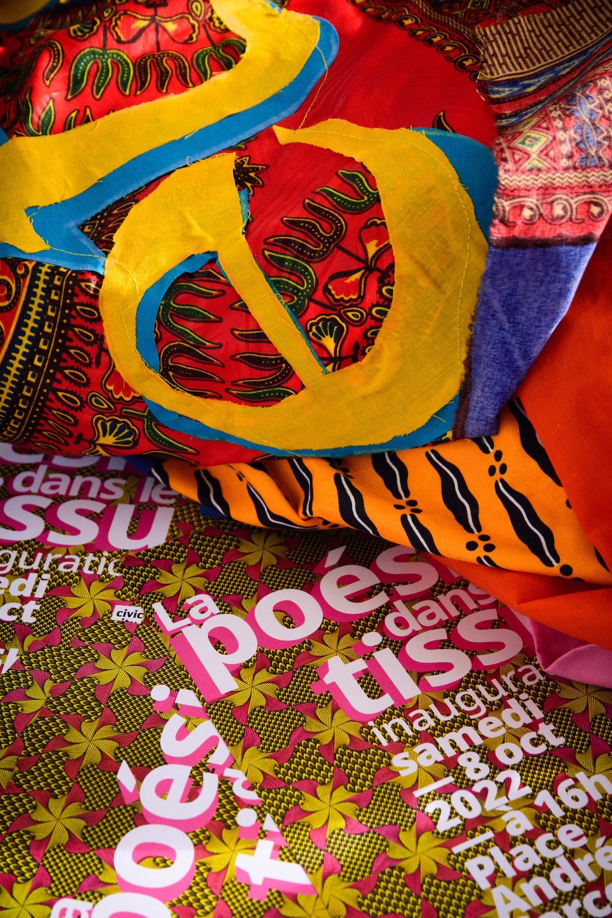 L’exposition circula et bien d’autres ateliers furent organisés en différents centres sociaux, maisons de quartier et au cours de multiples événements qui ponctuent le rythme de cette ville. Des groupes déjà constitués, de jeunes enfants comme de personnes âgées, des cercles de femmes, parfois d’hommes, certains rassemblés en communauté ou par pôle d’intérêt, y prirent part. « La poésie dans le tissu » devenait un complément d’activité temporaire, un lien aussi, puisque chaque groupe y participait à sa manière.